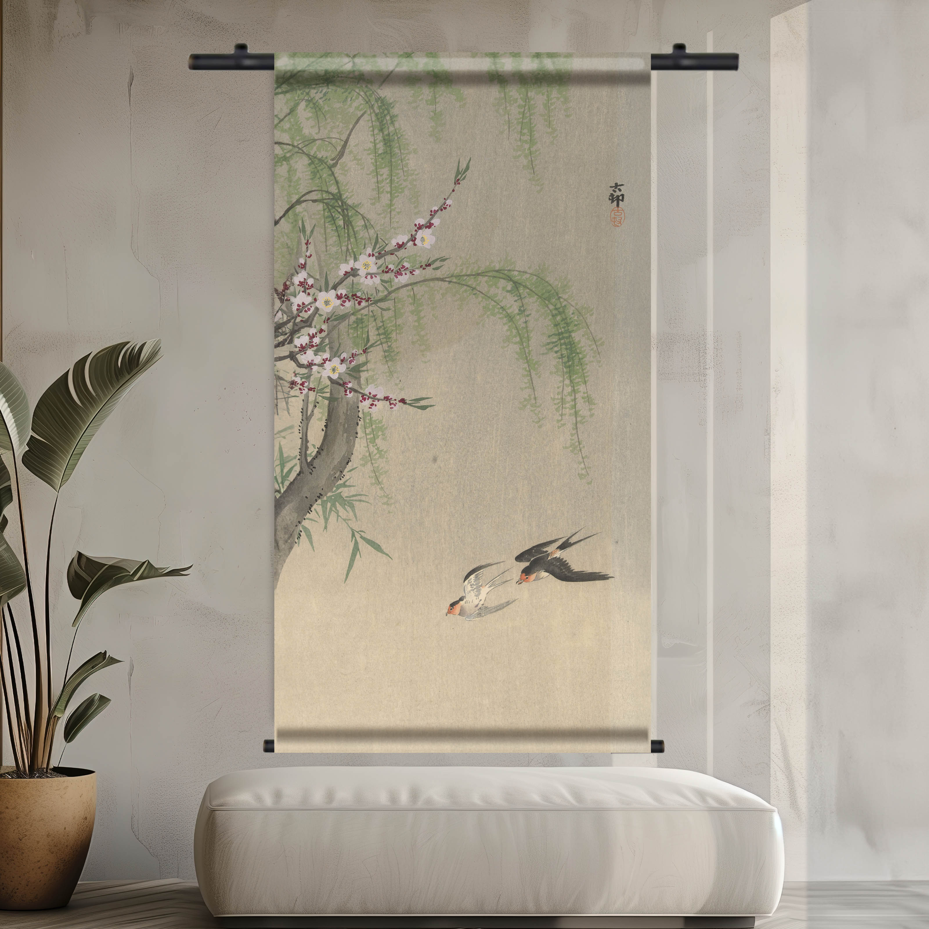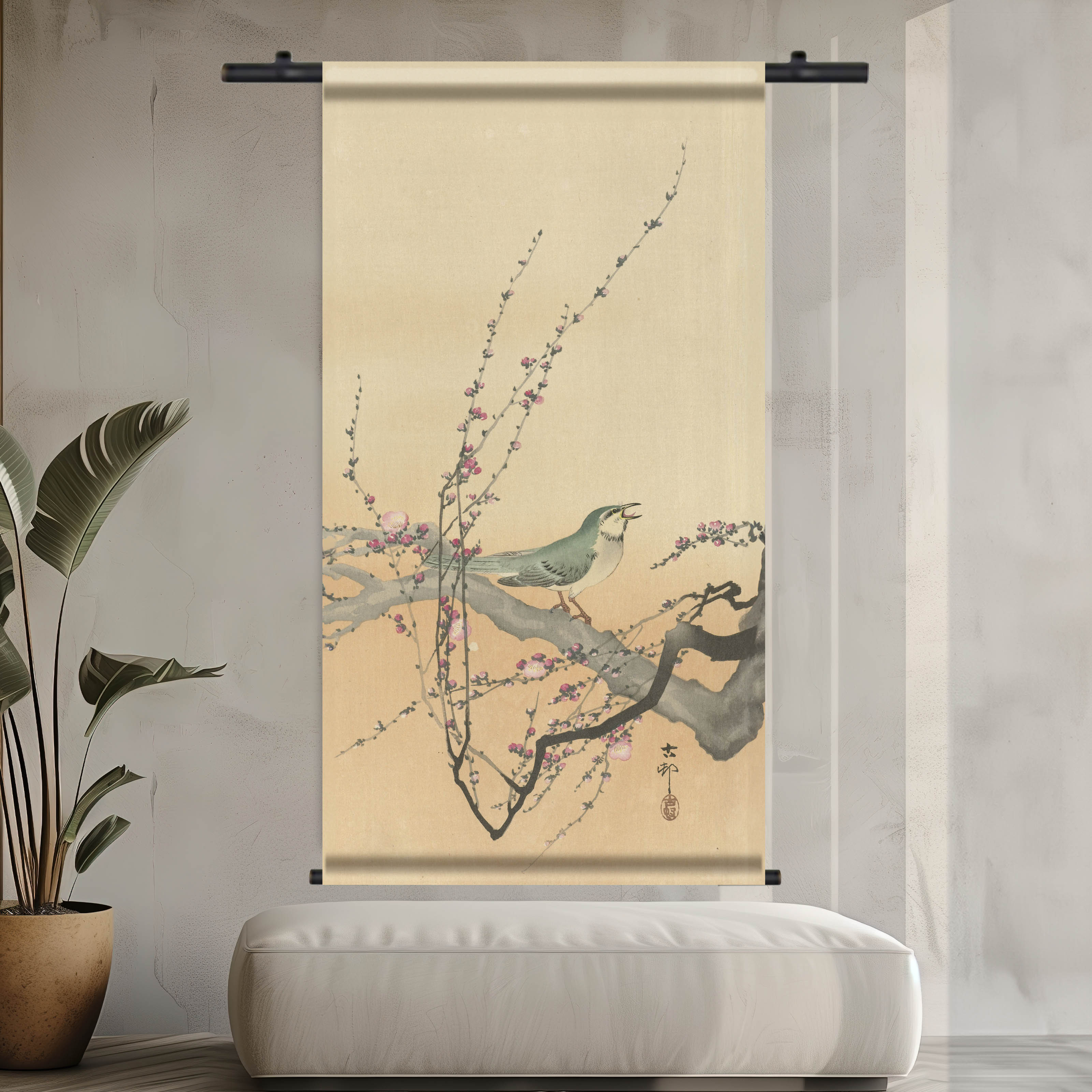Wandkleed | Zangvogel en pruimenbloesem