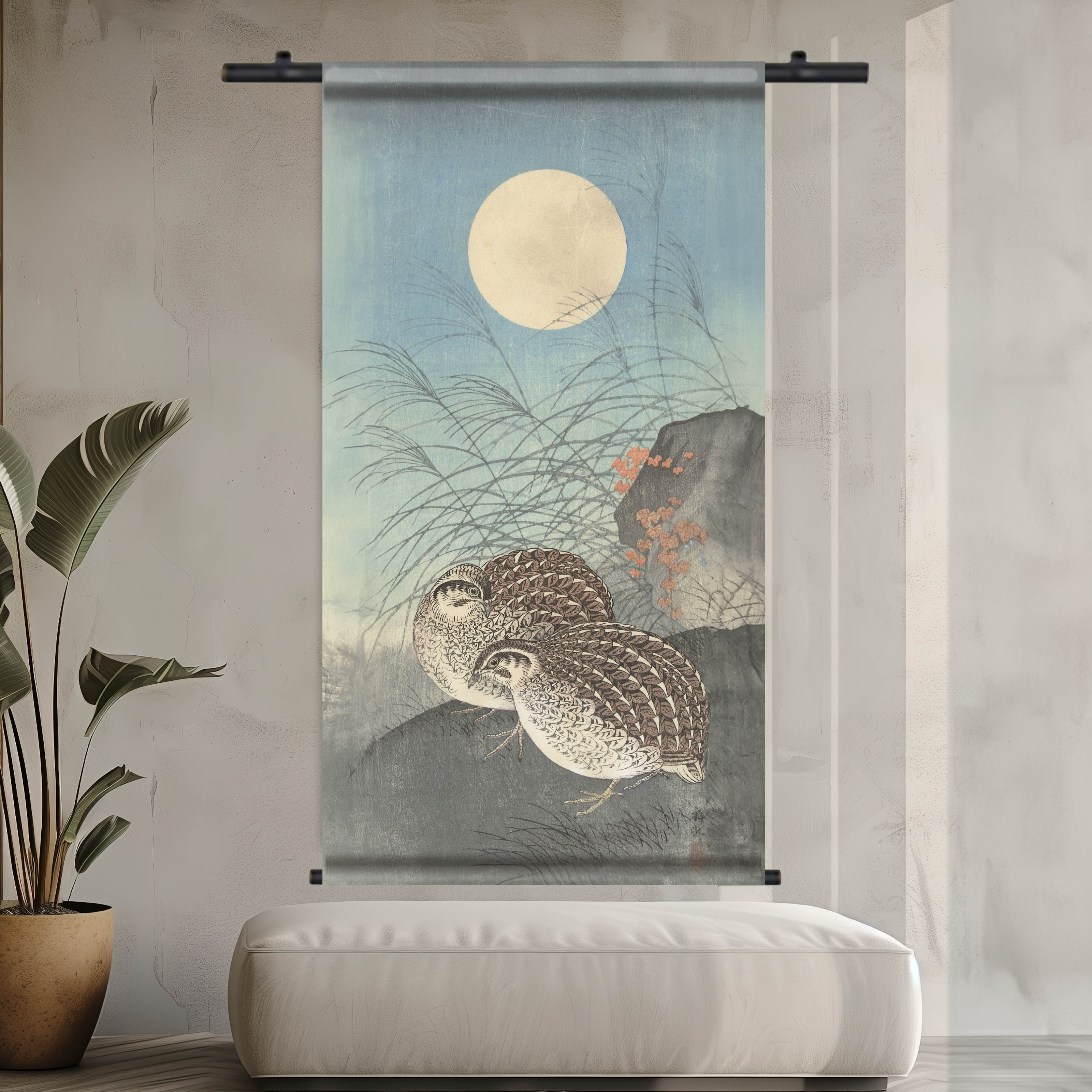 Wandkleed | Twee kwartels bij volle maan