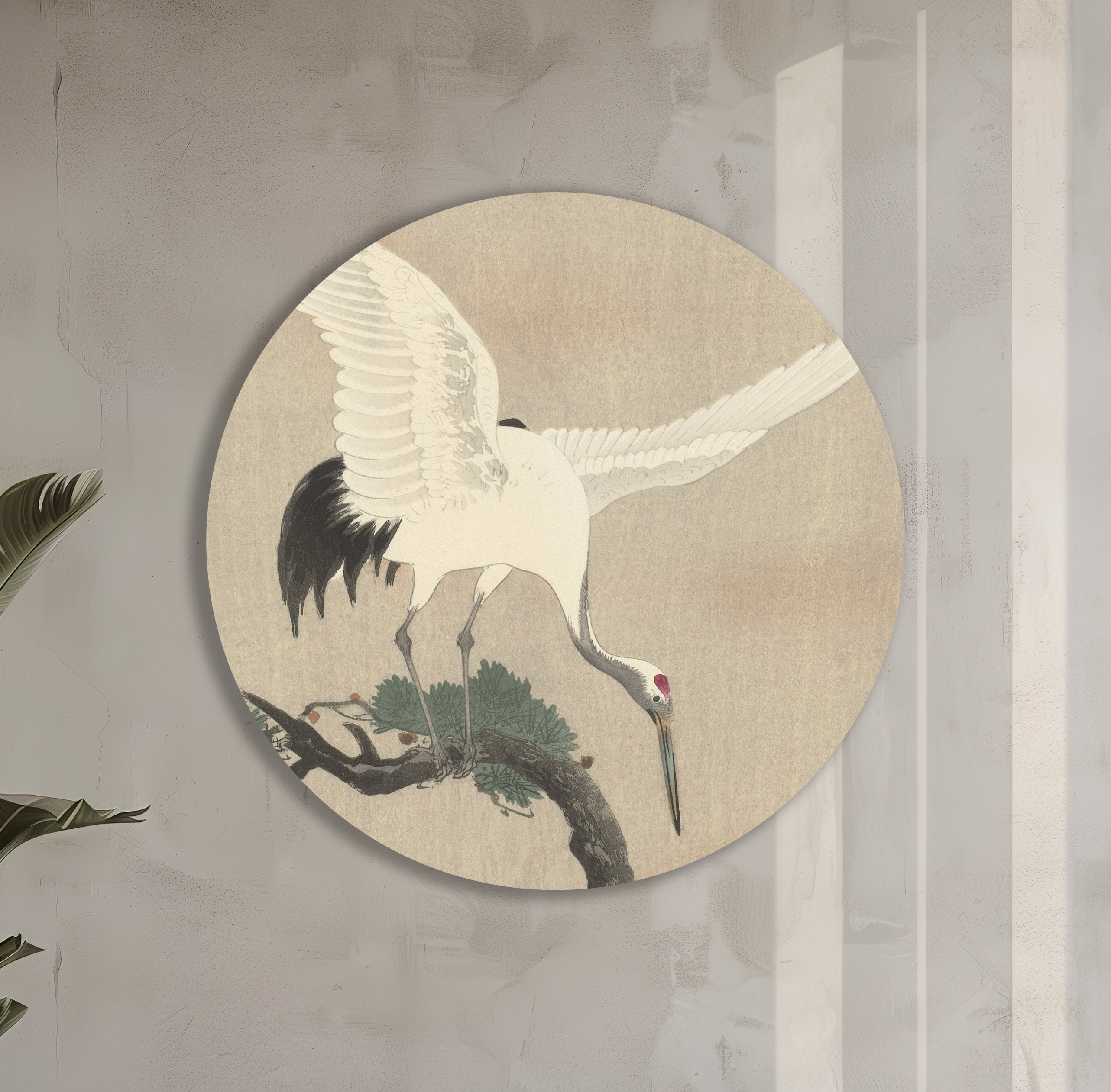 Muurcirkel | Japanse kraanvogel op pijnboomtak
