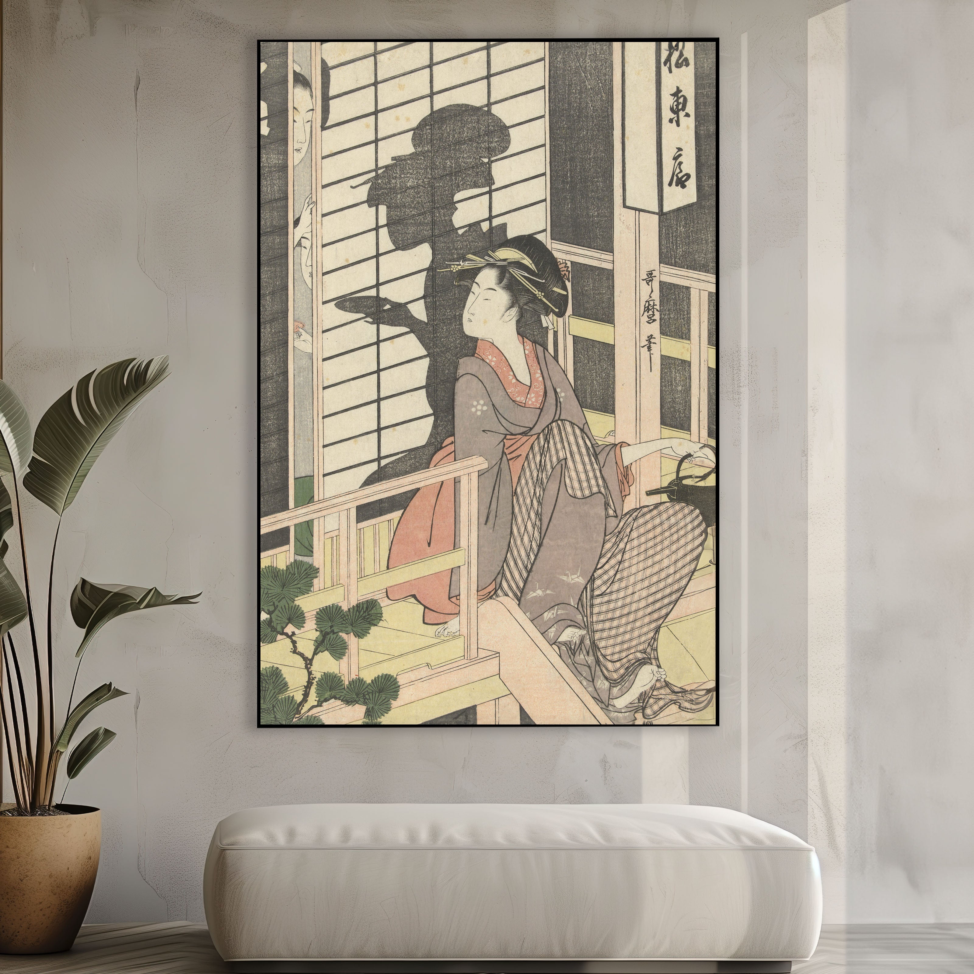 Het prachtige werk "Serveerster bij Matsu Higashi House".